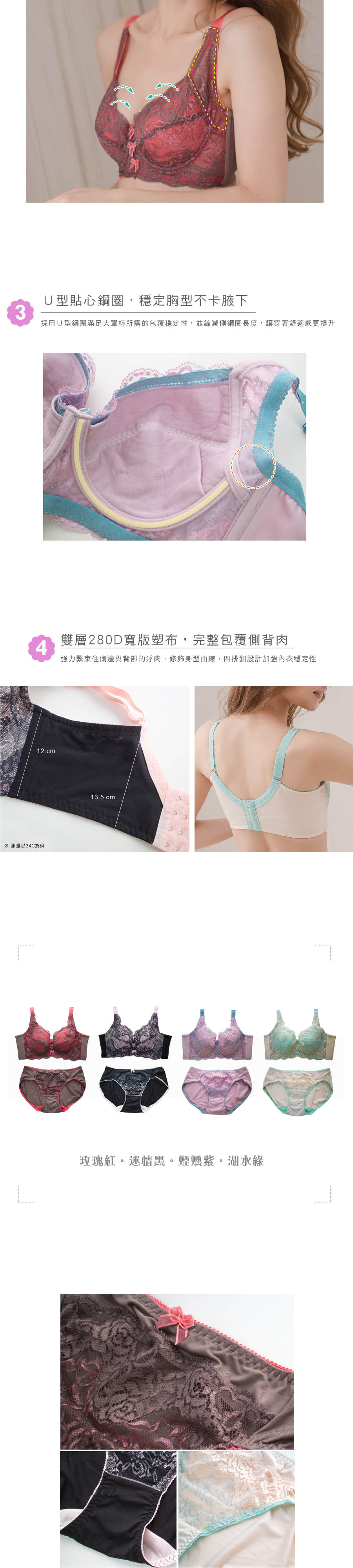 ★採用U型鋼圈及穩定土台設計,整件內衣穿起來非常穩定舒適