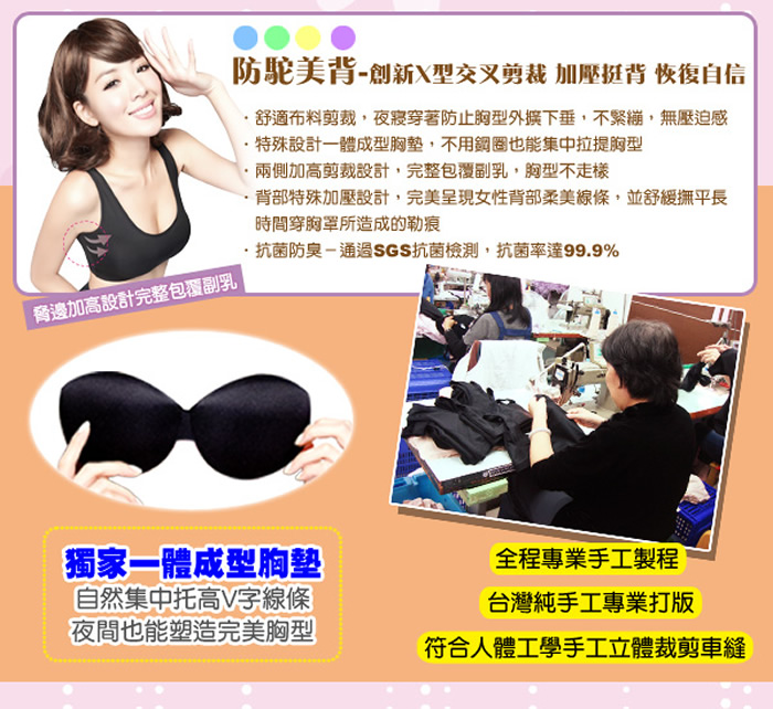 *兩側加高剪裁設計,完整包覆副乳,使胸型更加立體