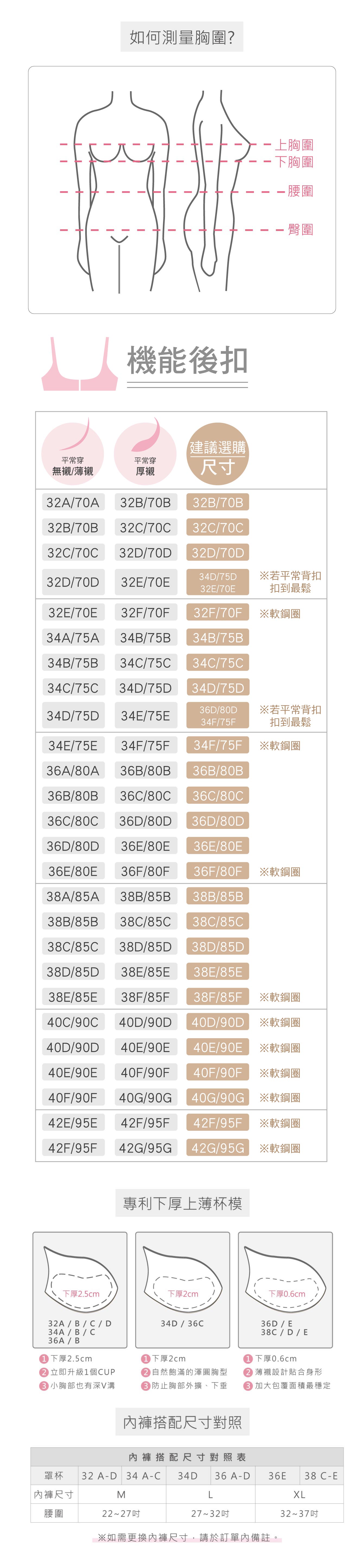 ★本款為成套內衣褲 32 A-C及34 A-C 和 32D 搭配內褲M 34D 和 36 A-D 搭配內褲L 36E 和 38C-E 搭配內褲XL 腰圍M(22-28")/L(29-32")/XL(33-38")