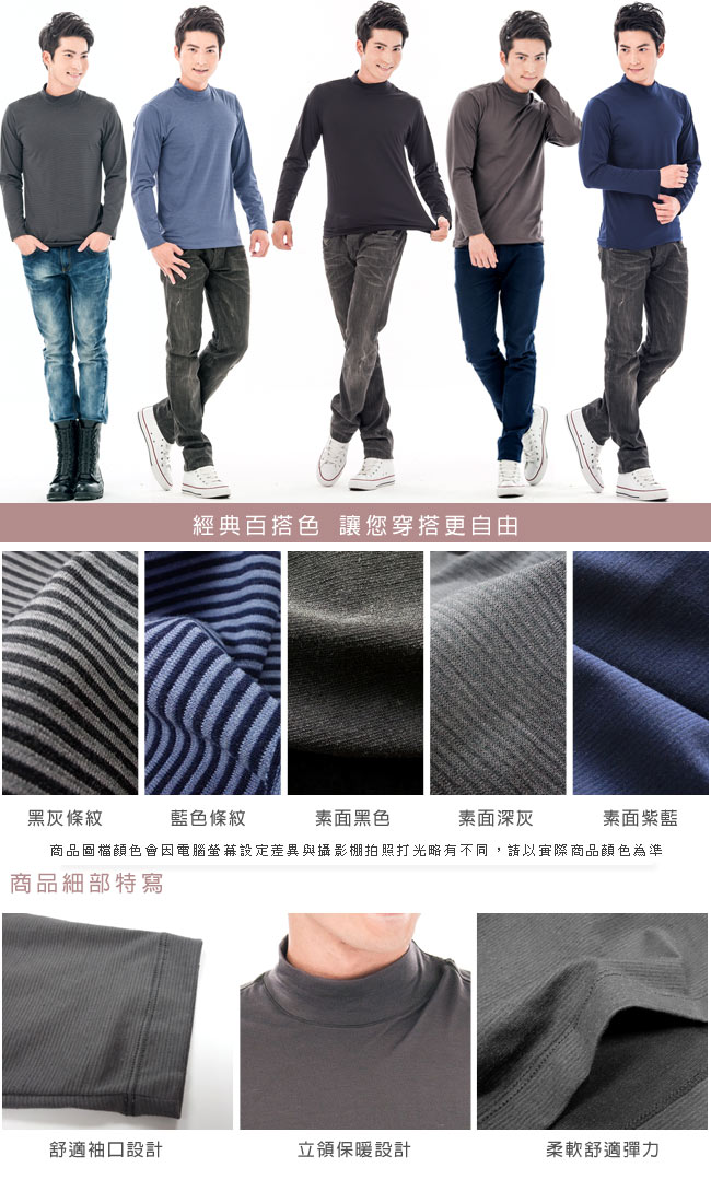 經典百搭色,吸濕保暖發熱衣 立領保暖,舒適袖口設計 採用高科技原料結合織造,柔軟舒適有彈力 台塑福懋六合一認證,BODYTEX認證吊牌