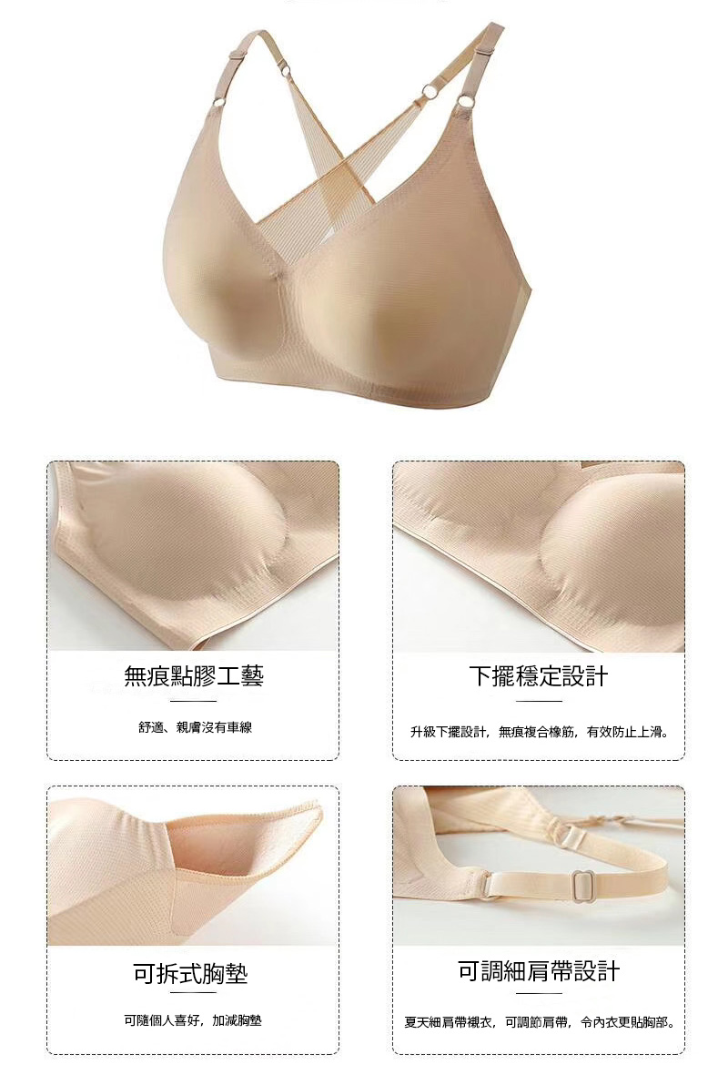 採用獨有的防止向上滑做工,備有細肩帶及同時美背的設計,讓你時時都可以大放異彩!罩杯是立體透氣投術,不怕悶熱又貼胸。