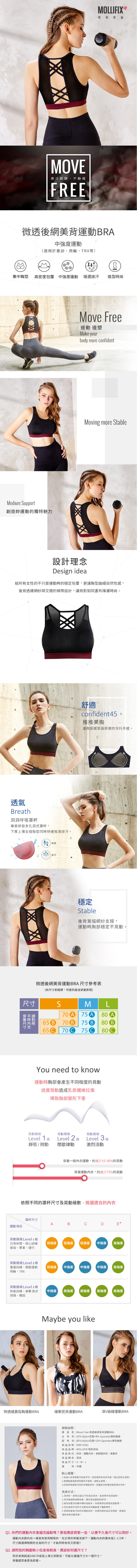 中強度美胸運動內衣; 適用於重訓、飛輪、TRX 等; 後背透膚網紗與交錯的條帶設計,讓背影揮灑時尚運動汗水; 專注鍛鍊 ‧ 不動搖。