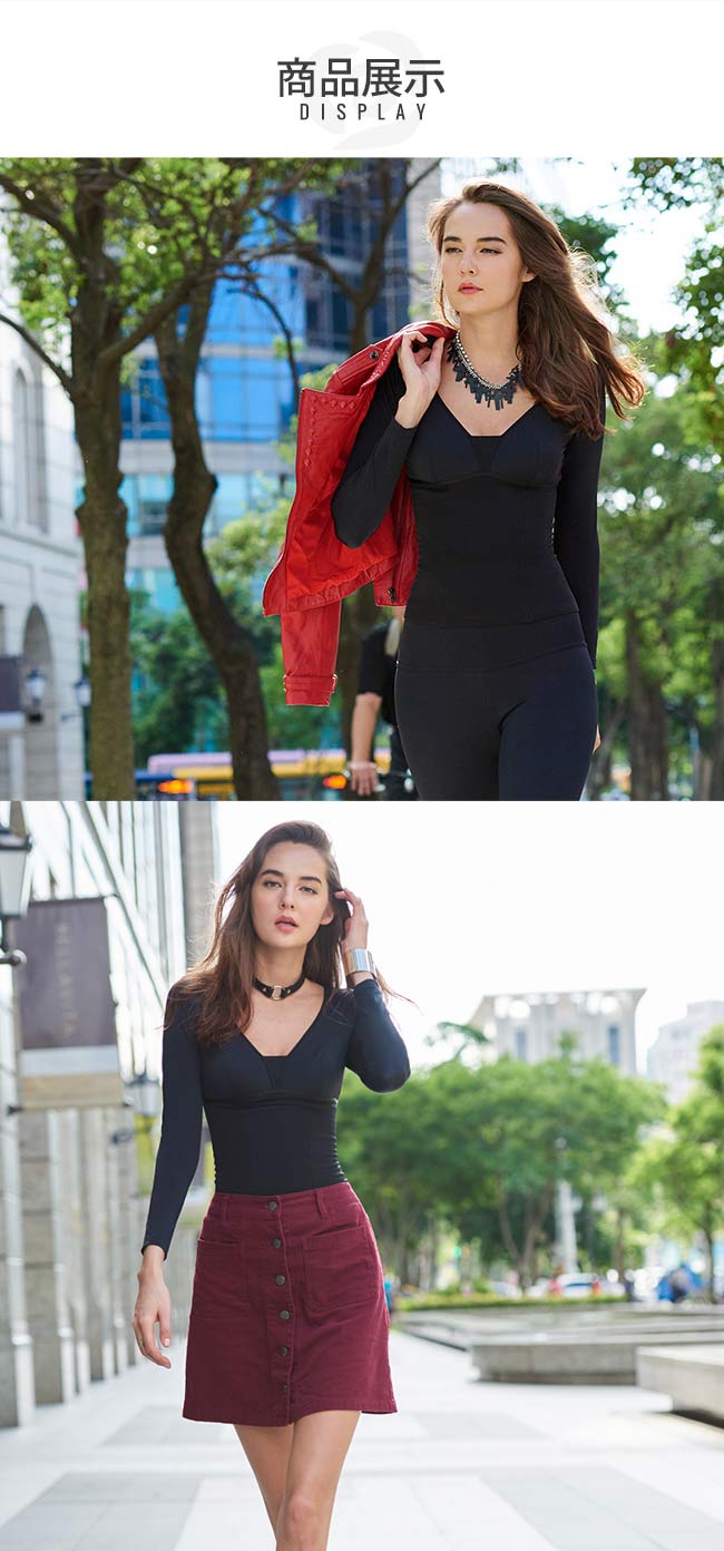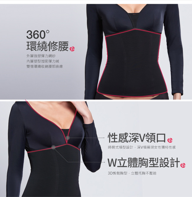 深V開領設計,穿搭美型; W托胸剪裁,舒壓立體胸杯; 強塑彈力網紗,環繞雕塑腰線; 腹部異材拼接,打造平復曲綫; 內襯抗寒嬰兒絨,舒膚保暖; 後背低領設計,美型不外露。