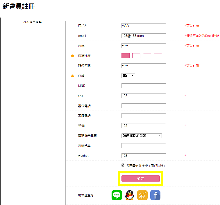 2.按照提示輸入個人資料,然後點擊{確定},即可完成註冊