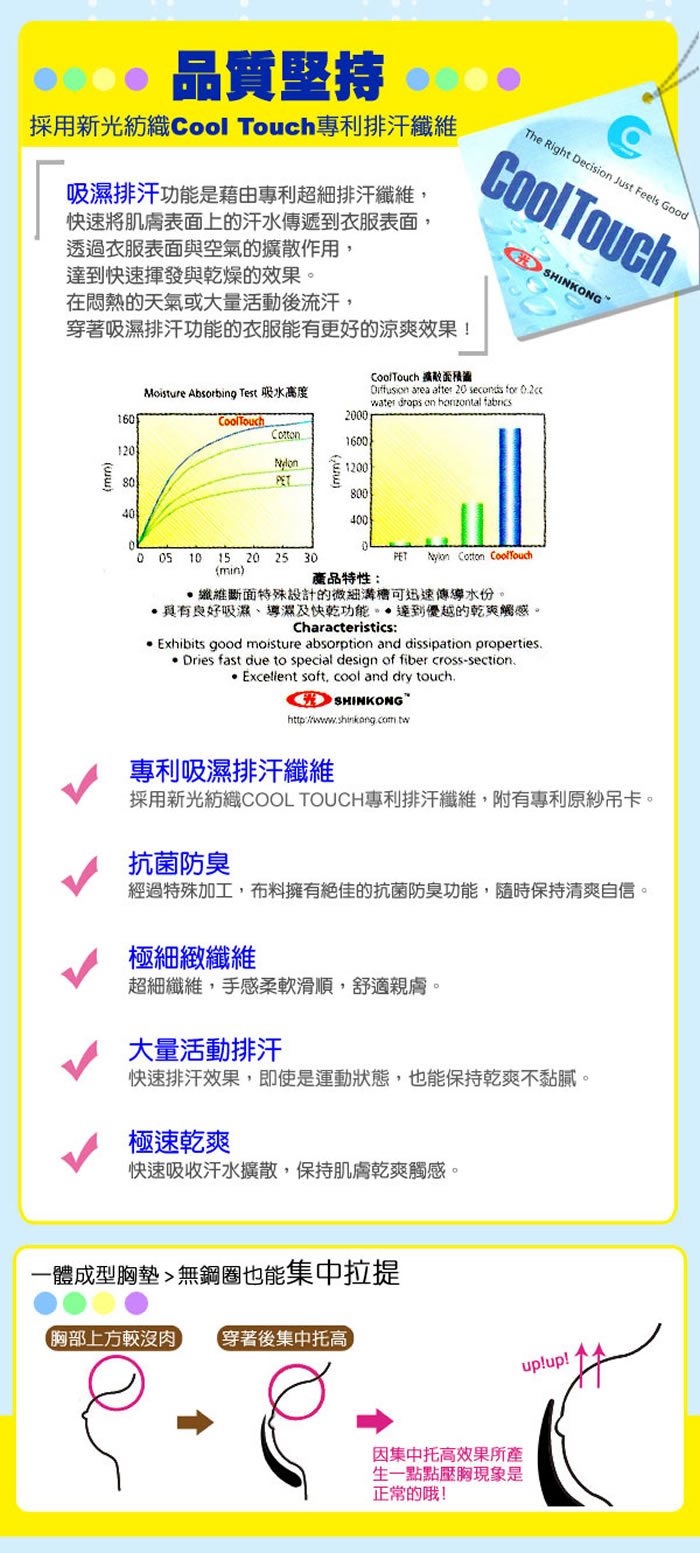 採用新光紡織COOL TECH新型態聚酯纖維!