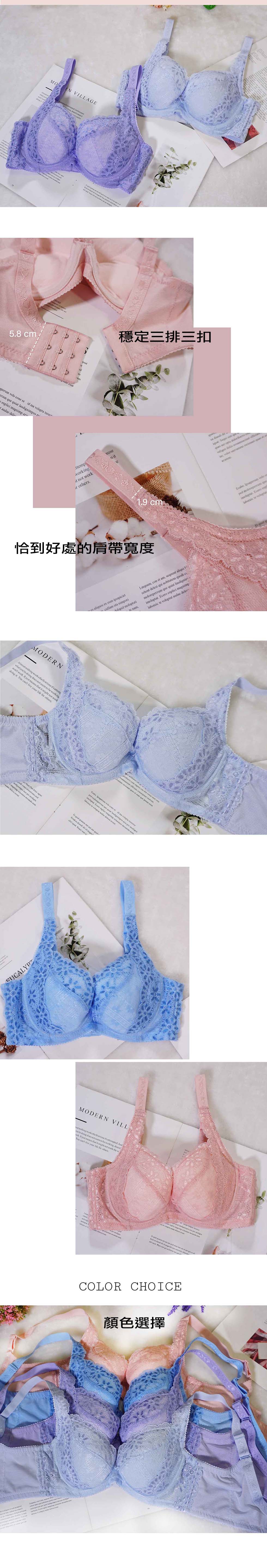 柔和小花圖案,柔和顏色,著上後有柔膚感覺,令肌膚睇上去都白淨左一度,台灣製造柔膚機能內衣,質料彈性好,著左不會有壓逼既感覺!