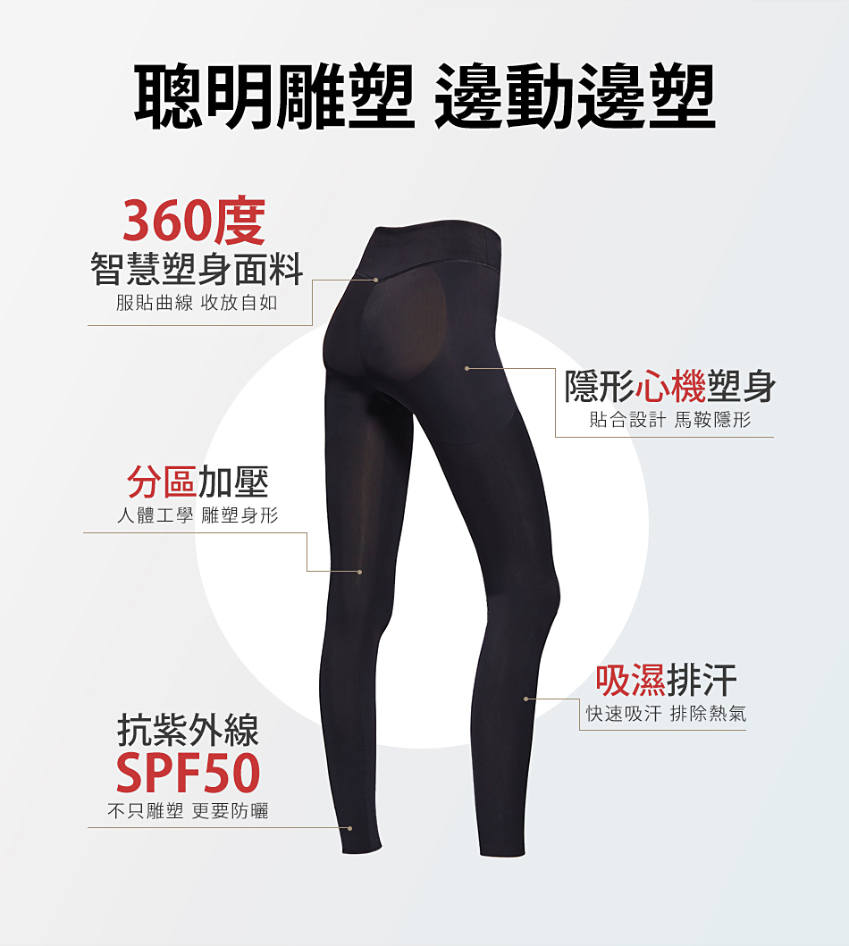 針對收小腹,大腿內側,大腿,50度防曬。