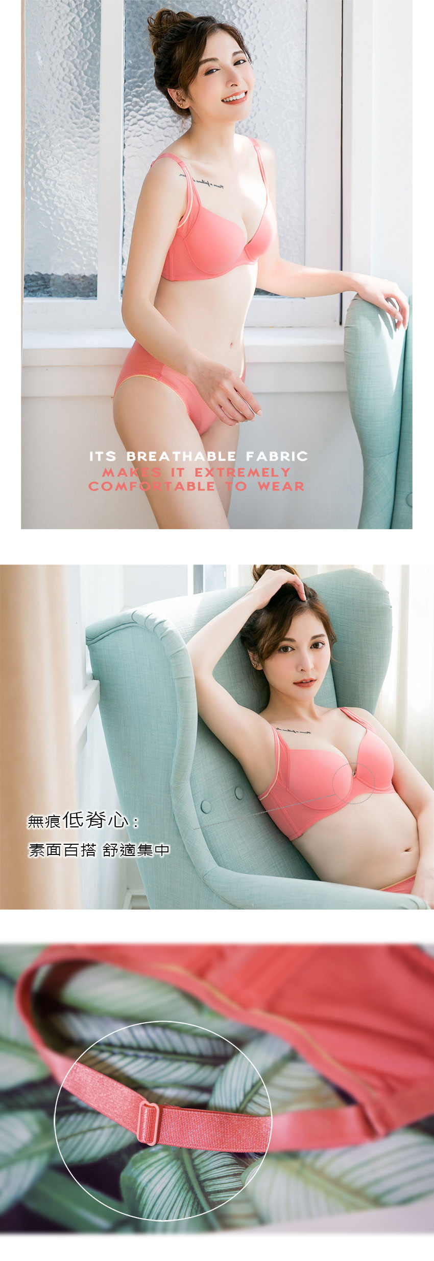【透氣無痕】低脊心呼吸機能T bra 配套內褲