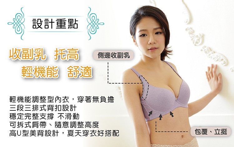 可拆式肩帶,滿足不同需求 材質透氣速幹,吸濕排汗 無痕舒適,穿衣好搭配 3排3扣,穩固不移位